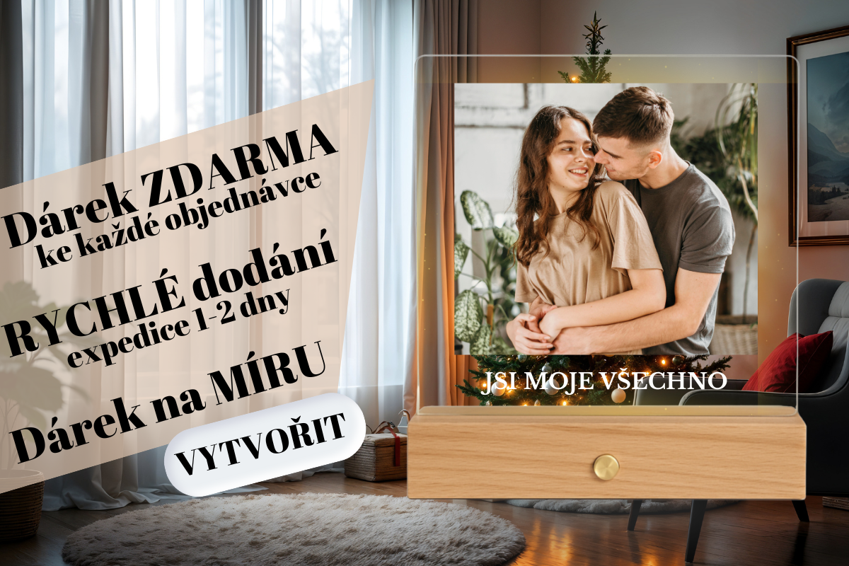 Vložte vlastní fotku, přidejte jakýkoliv text . Následně si vyberete stojánek. Pozor DÁRKOVÉ BALENÍ máte od nás zdarma.