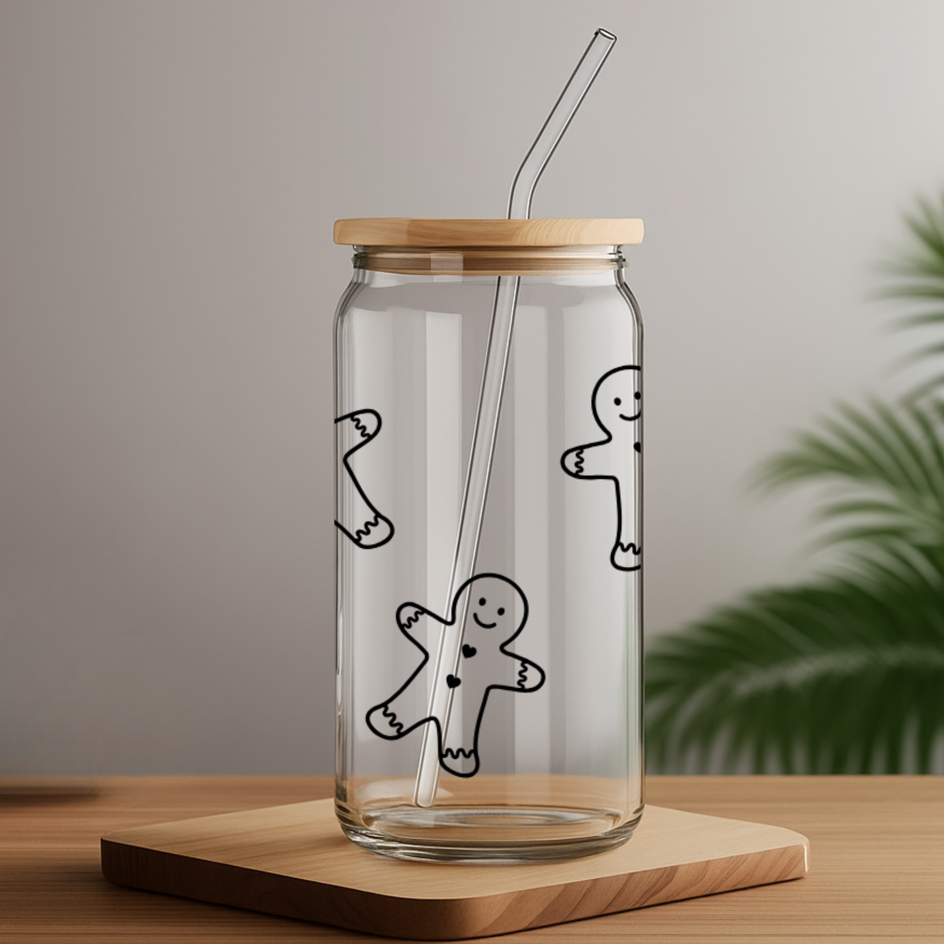 🧡 Sklenička s motivem perníčků – 500 ml | Vánoční kouzlo do každého doušku