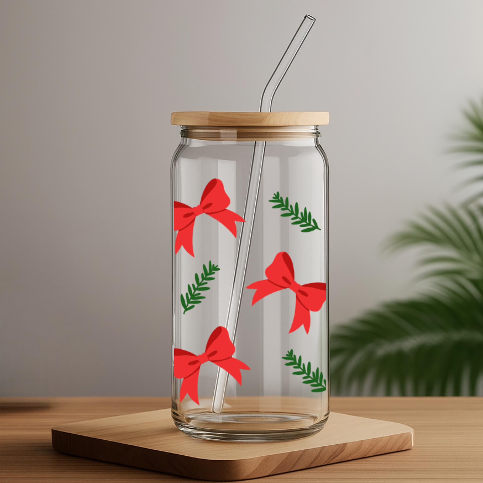 Vánoční Sklenička - s bambusovým víčkem a brčkem (500 ml)