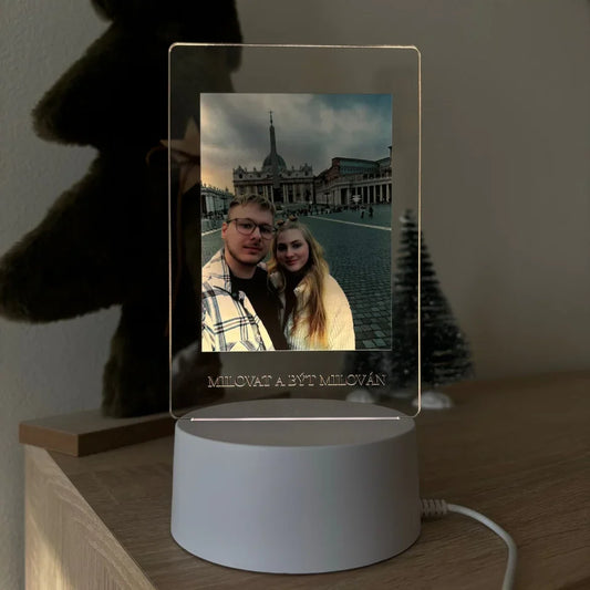 Svítící lampička s vlastní fotkou a textem. DÁRKOVÉ BALENÍ máte od nás zdarma.